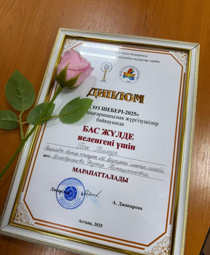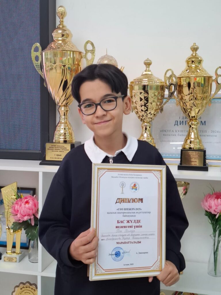«СӨЗ ШЕБЕРІ – 2025» қалалық шығармашылық жүргізушілер байқауында БАС ЖҮЛДЕ иеленгені үшін Пак Тимурды шын жүректен құттықтаймыз!