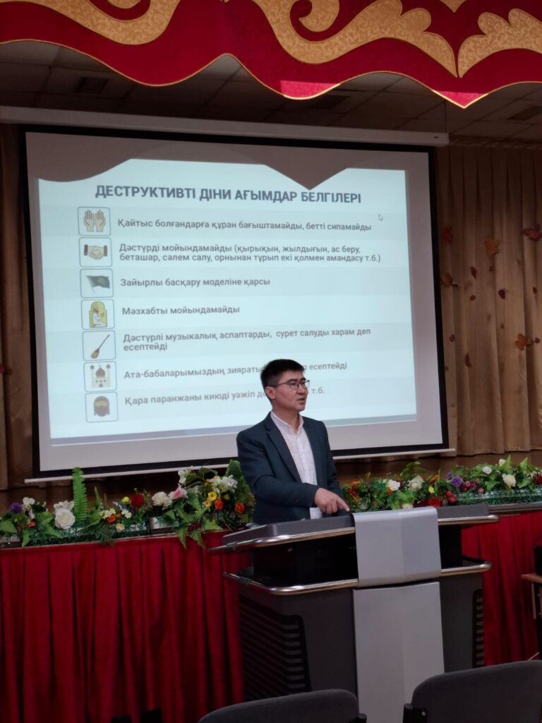 2026 жылғы 9 қаңтар күні мектебімізде 9-сынып оқушыларына арналған «Дін саласындағы ақпараттық-түсіндіру жұмыстарының негізгі бағыттары» тақырыбында дәріс сабағы өтті. Дәрісті Астана қаласы Дін істер басқармасының қолдауымен «Қамқор-Астана» қоғамдық қорының лектор-теологы Мұратбек Дәрібай өткізді.