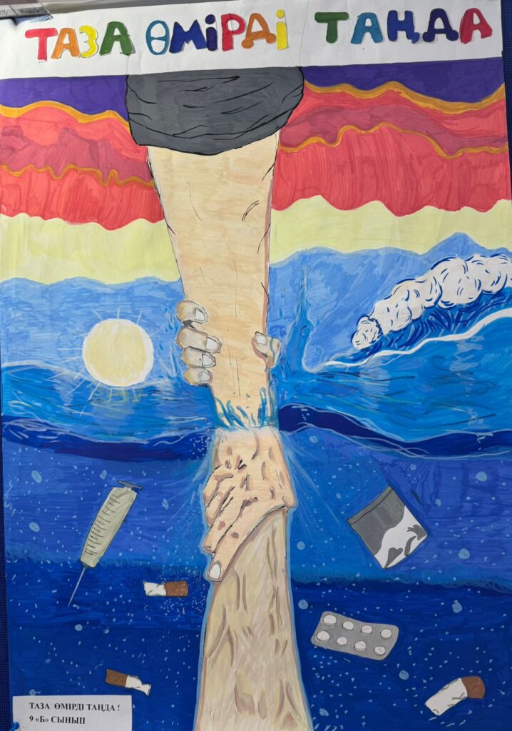 Аталған жұмыс аясында 9-сыныптарға берілген тақырыптар бойынша мағыналы, сапалы плакаттар мен қабырға газеттерін дайындау тапсырылды. Оқушылар өз жұмыстарын шығармашылық тұрғыда орындап, тақырып мазмұнын толық ашып көрсетті. Атап айтқанда: